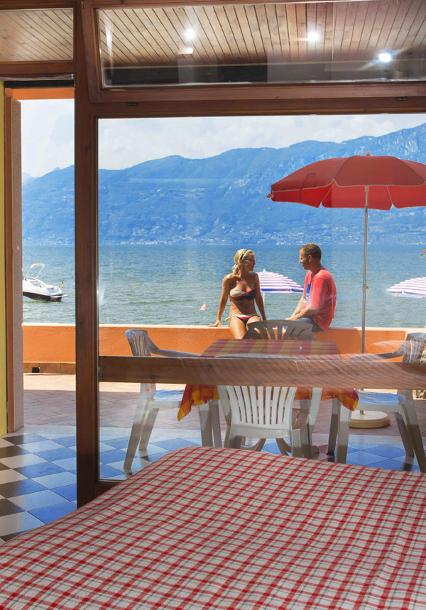 Bungalow in riva al lago per 4 persone. Il bungalow si trova accanto al nostro hotel, direttamente sulla spiaggia privata. Si sviluppa su 2 piani, separati da una scala in legno (senza porta).